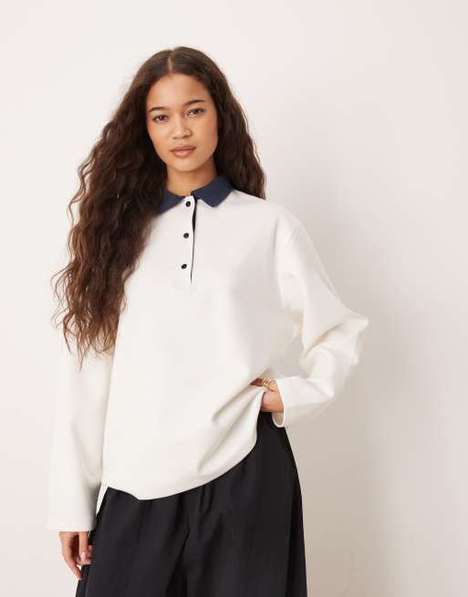 ASOS DESIGN – Rugby-Oberteil aus Interlock in Ecru mit Kontrastkragen