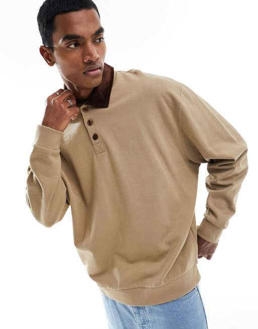 ASOS DESIGN – Rugby-Polo-Sweatshirt in Braun mit Oversize-Schnitt und Cordkragen