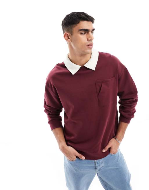 ASOS DESIGN – Rugby-Polo-Sweatshirt in Burgunderrot mit Oversize-Schnitt und Fake-Kragen