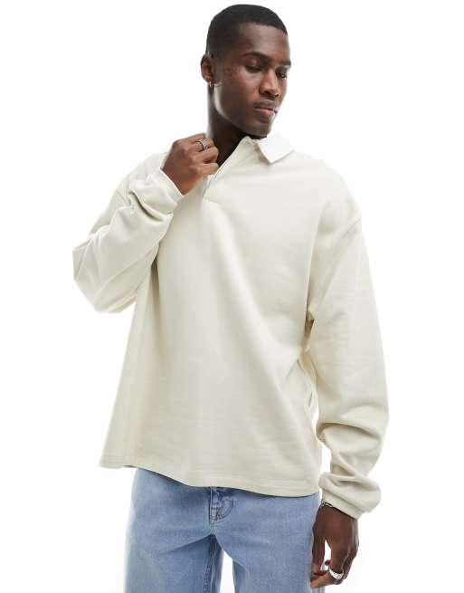 ASOS DESIGN – Rugby-Sweatshirt in Beige mit Oversize-Schnitt und Polokragen