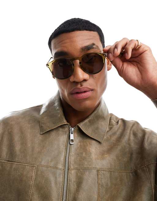 ASOS DESIGN – Runde Oversize-Sonnenbrille in Kristall-Khaki