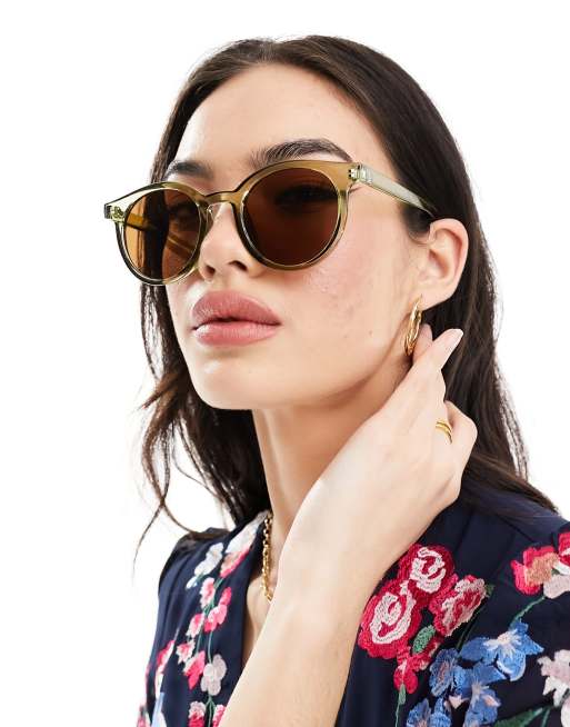 ASOS DESIGN – Runde Sonnenbrille in Kristallgrün mit braunen Gläsern