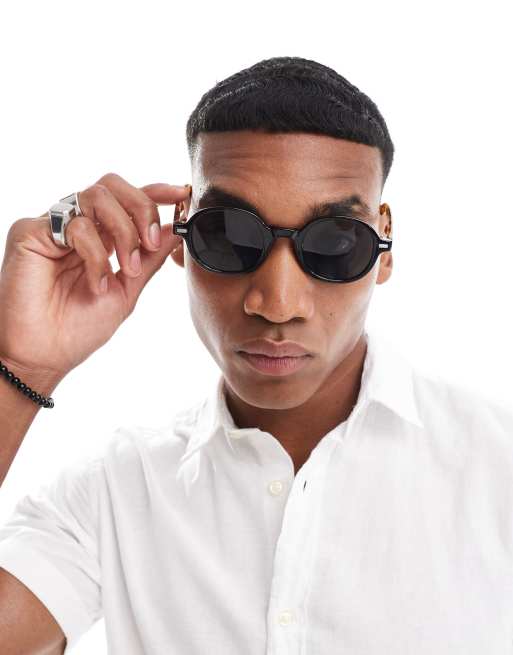 ASOS DESIGN – Runde Sonnenbrille in Schwarz mit Bügeln in Schildpatt-Optik