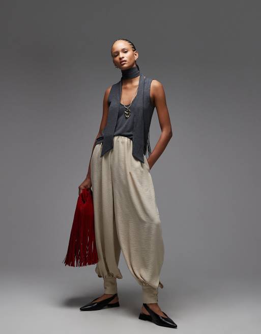 ASOS DESIGN – Sandfarbene Ballon-Hose in mit Bündchendetail