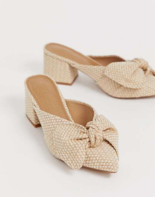 ASOS DESIGN – Santos – Pantoletten mit Schleife und mittelhohem Absatz