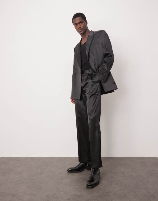 ASOS DESIGN – Satin-Anzughose in Schwarz mit geradem Schnitt