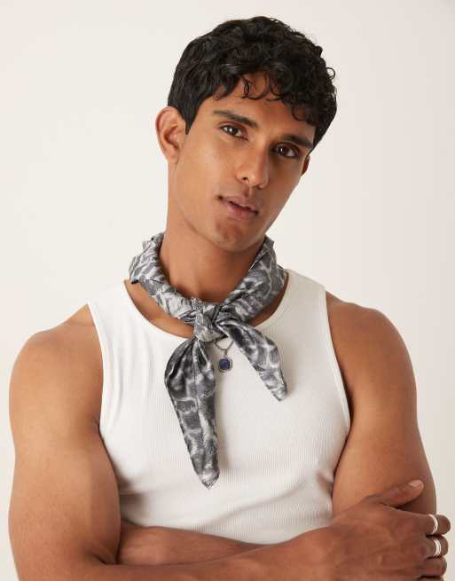 ASOS DESIGN – Satin-Bandana in Grau mit Schlangenmuster