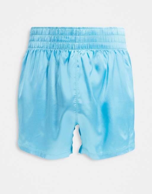 ASOS DESIGN – Satin-Boxershorts in Blau mit breitem Bund