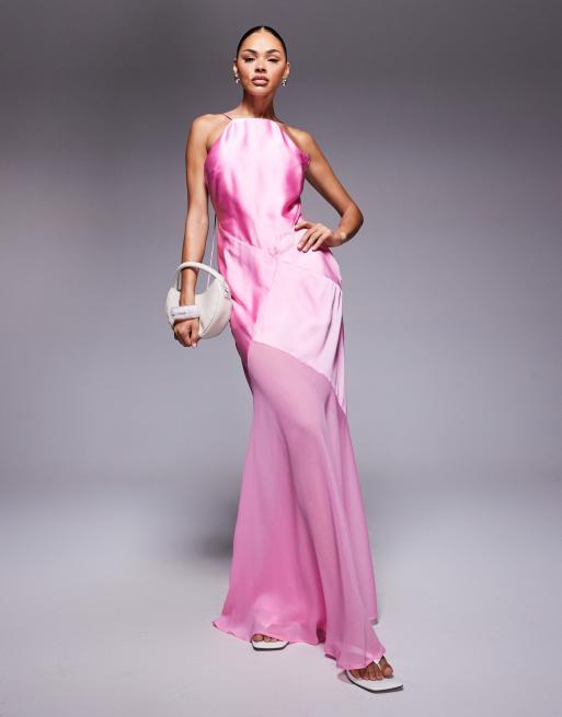 ASOS DESIGN – Satin-Maxikleid in Rosa mit Chiffon-Rock und Bahnen-Design
