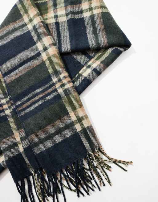 ASOS DESIGN – Schal in Marineblau kariert mit Bommeln