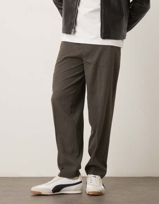 ASOS DESIGN – Schicke, schmal zulaufende Oversize-Hose aus Flanell in Grau mit Nadelstreifen