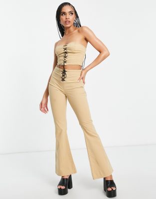 ASOS DESIGN – Schlaghose in Stein mit Schnürdetail, Kombiteil
