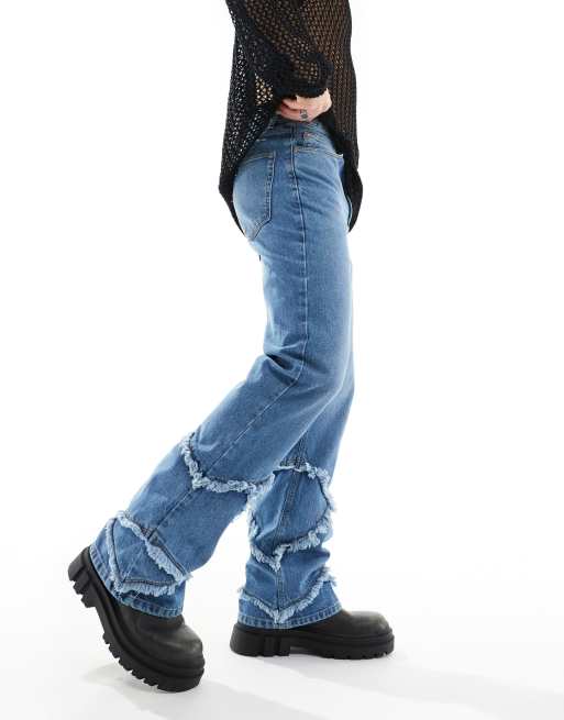 ASOS DESIGN – Schlagjeans in Mittelblau mit ungesäumten Kanten