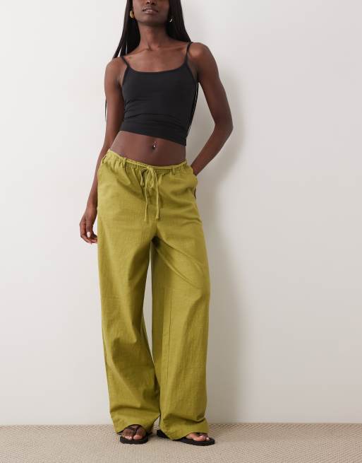 ASOS DESIGN – Schlupf-Shorts in olivgrüner Leinenoptik