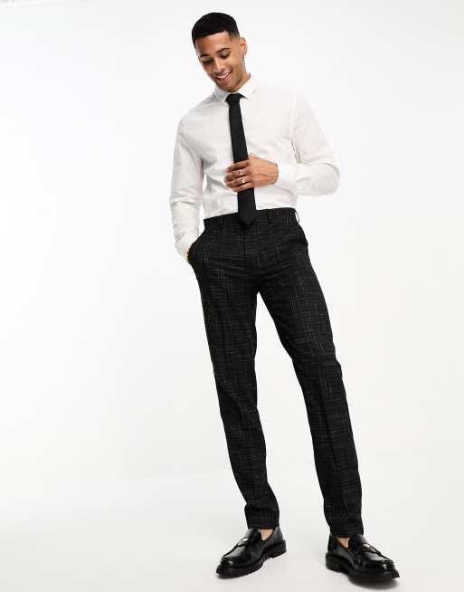 ASOS DESIGN – Schmal geschnittene Anzughose in Schwarz mit Kreuzschraffur-Muster