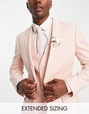 ASOS DESIGN – Schmal geschnittene Anzugjacke aus Leinenmischung in Rosa