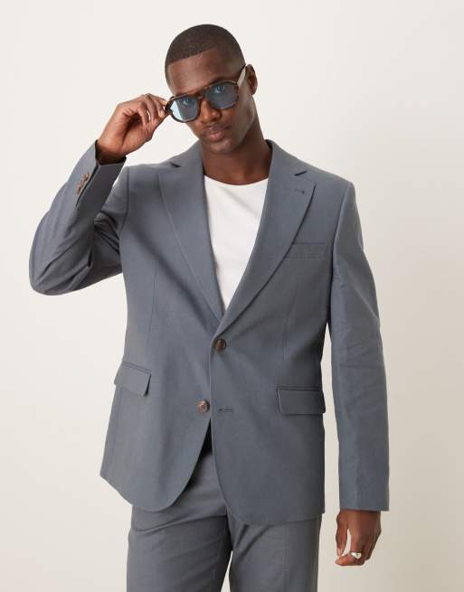 ASOS DESIGN – Schmal geschnittene Anzugjacke aus Leinenmix in Blau