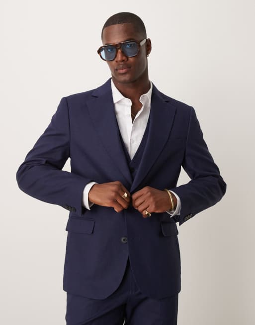 ASOS DESIGN – Schmal geschnittene Anzugjacke aus Leinenmix in Marineblau
