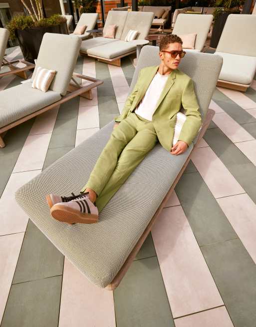 ASOS DESIGN – Schmal geschnittene Anzugjacke mit Leinen in Salbeigrün