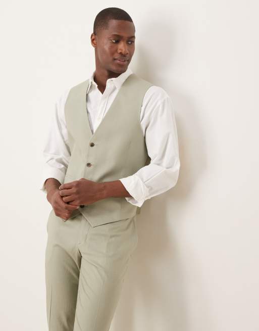 ASOS DESIGN – Schmal geschnittene Anzugweste aus Leinenmix in Salbeigrün