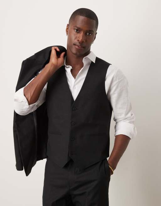 ASOS DESIGN – Schmal geschnittene Anzugweste aus Leinenmix in Schwarz