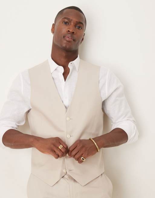 ASOS DESIGN – Schmal geschnittene Anzugweste aus Leinenmix in Stein