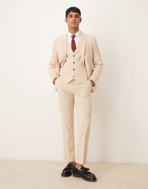 ASOS DESIGN – Schmal geschnittene Anzugweste in Stein