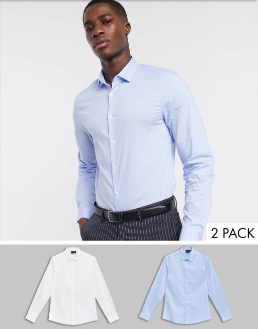 ASOS DESIGN – Schmal geschnittene Hemden im 2er-Pack in Weiß und Blau