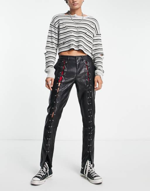 ASOS DESIGN – Schmal geschnittene Hose in Lederoptik mit geschnürter Vorderseite