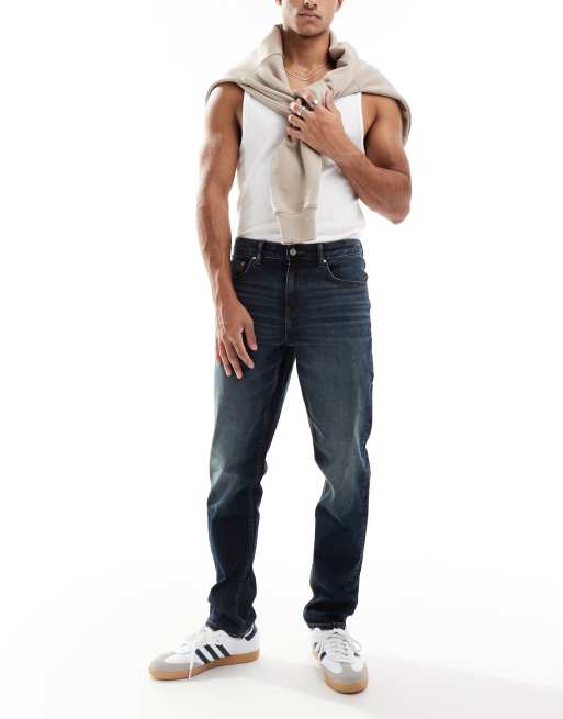 ASOS DESIGN – Schmal geschnittene Jeans in verwaschener, dunkelblauer Tönung