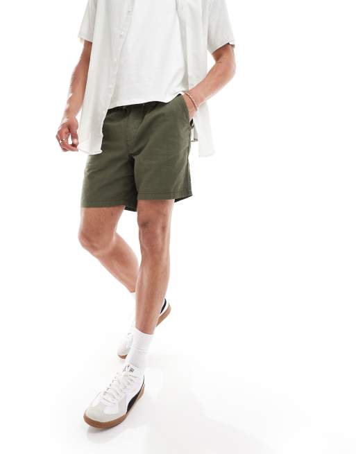 ASOS DESIGN – Schmal geschnittene Leinen-Shorts in Khaki