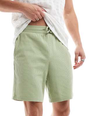 ASOS DESIGN – Schmal geschnittene Shorts in Grün mit Waffelstruktur