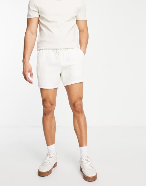 ASOS DESIGN – schmal geschnittene Shorts mit Waffelstruktur in Ecru