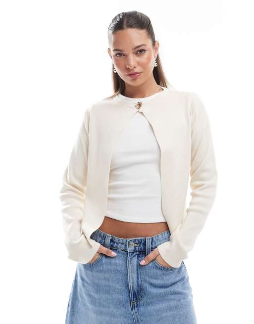 ASOS DESIGN – Schmal geschnittene Strickjacke in Ecru mit einem Knopf