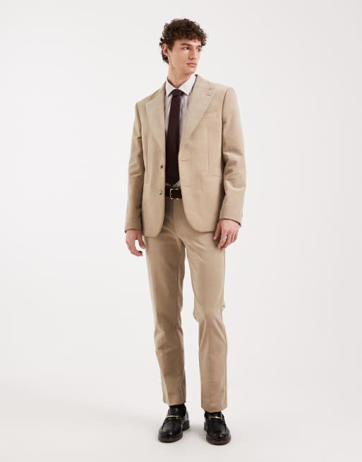 ASOS DESIGN – Schmal geschnittener Anzug aus Cord in Beige