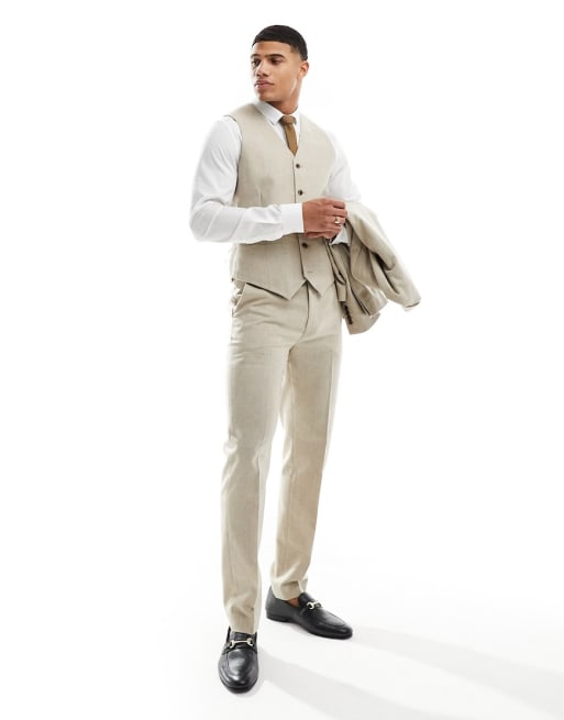 ASOS DESIGN – Schmal geschnittener Anzug aus strukturiertem Wollmix in Beige