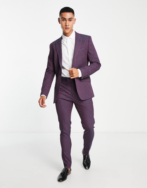 ASOS DESIGN – Schmal geschnittener Anzug aus Twill mit Hahnentrittmuster in Lila