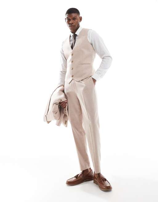 ASOS DESIGN – Schmal geschnittener Anzug aus Wollmix-Tweed in Hellrosa