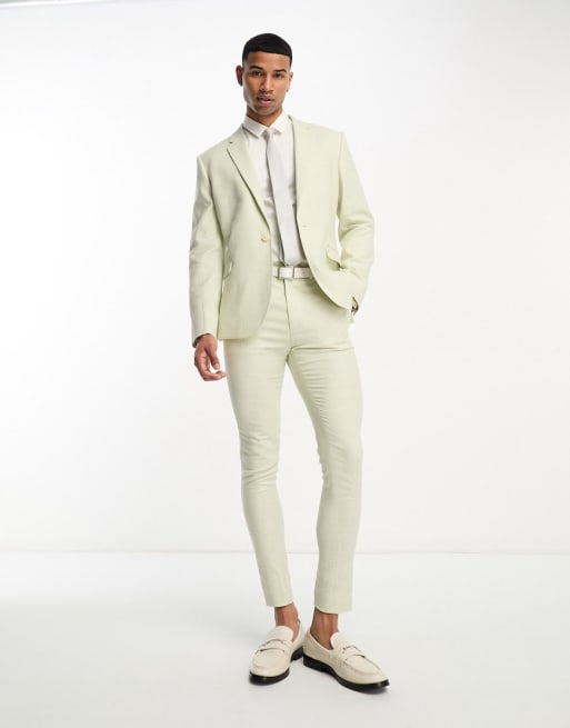 ASOS DESIGN – Schmal geschnittener Leinen-Anzug in Grün mit Pepitamuster