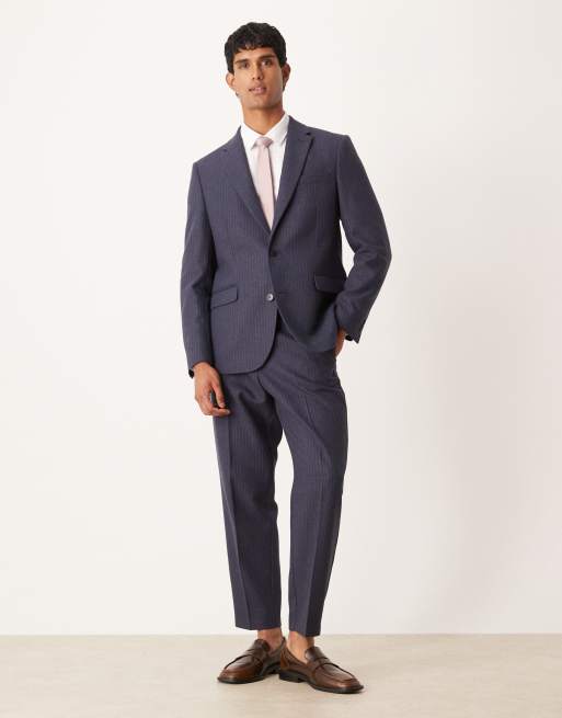 ASOS DESIGN – Schmal zulaufende Anzughose in Marineblau mit Wollanteil und Nadelstreifen