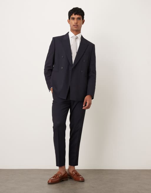 ASOS DESIGN – Schmal zulaufende Anzughose in Marineblau
