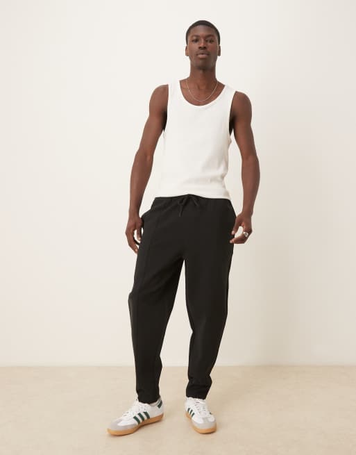 ASOS DESIGN – Schmal zulaufende Doubleface-Jogginghose in Schwarz mit Biesen