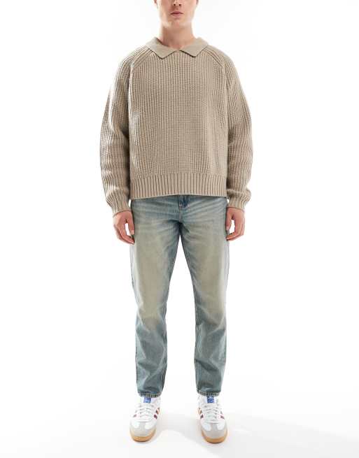 ASOS DESIGN – Schmal zulaufende Jeans in mittelblauer Waschung mit Farbstich