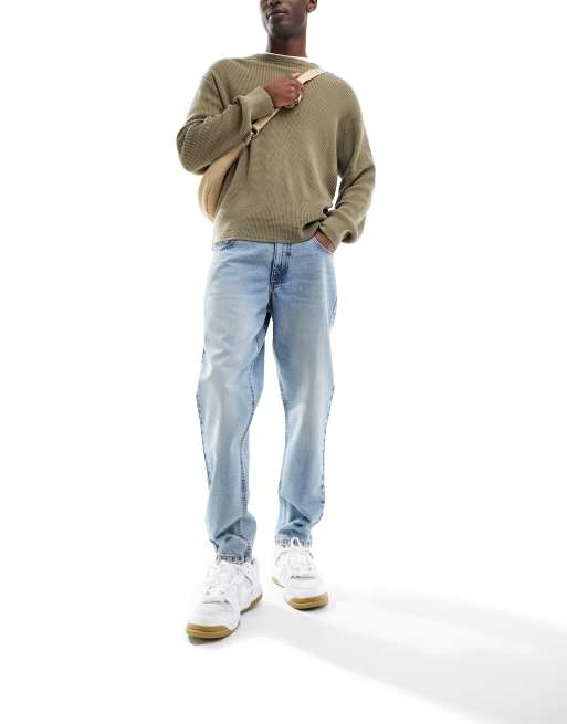 ASOS DESIGN – Schmal zulaufende Jeans in verwaschenem, getöntem Hellblau