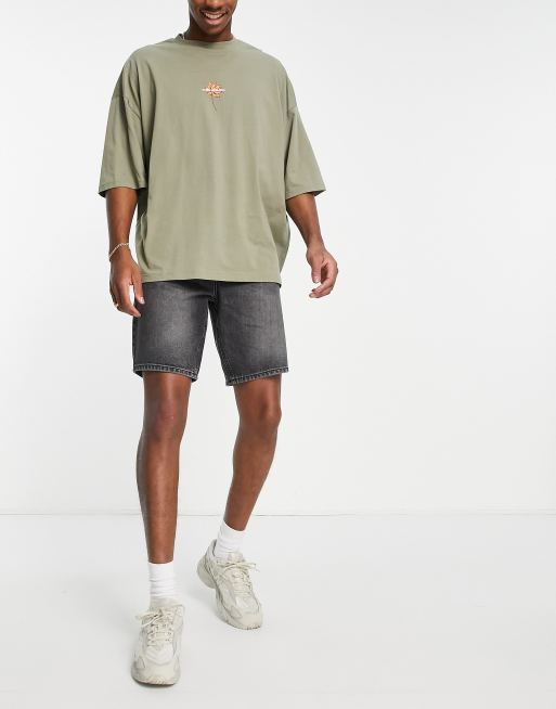 ASOS DESIGN – Schmal zulaufende Jeansshorts in verwaschenem Schwarz, reguläre Länge