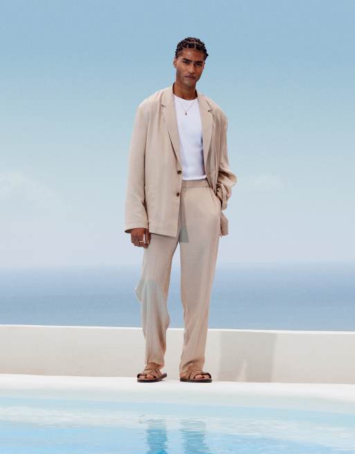 ASOS DESIGN – Schmal zulaufende, leichte Anzughose in Steinbeige mit Oversize-Schnitt