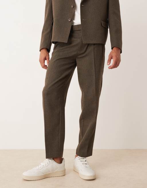 ASOS DESIGN – Schmal zulaufende Oversize-Anzughose in Braun