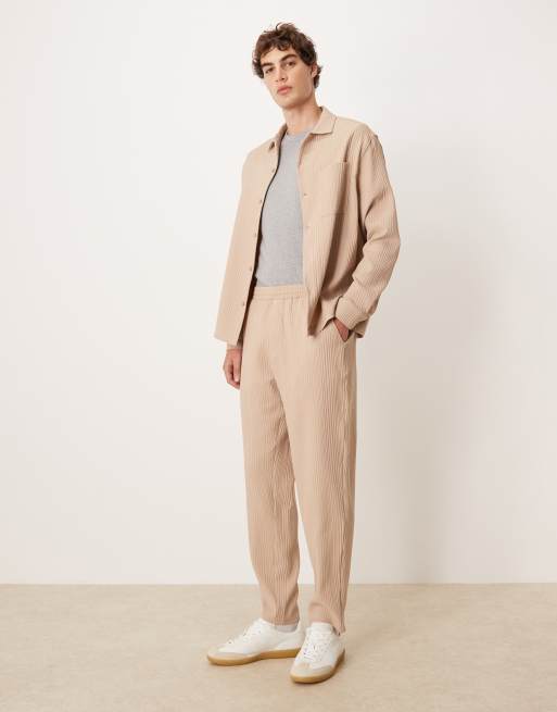ASOS DESIGN – Schmal zulaufende, plissierte Hose in Beige, Kombiteil
