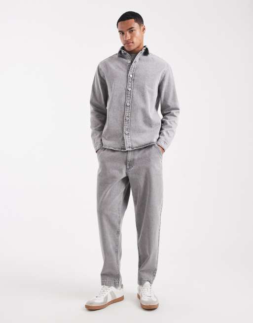 ASOS DESIGN – Schmal zulaufendes Relaxed-Fit-Outfit in Hellgrau, Kombiteil