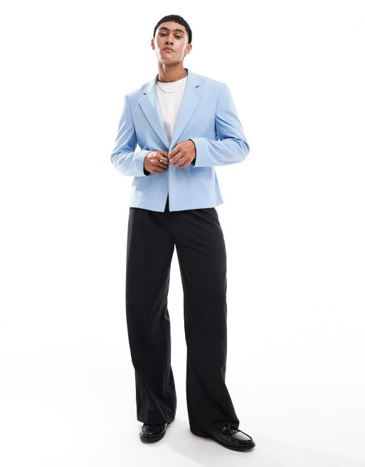 ASOS DESIGN – Schmale Anzugjacke in Blau mit Bahnendesign